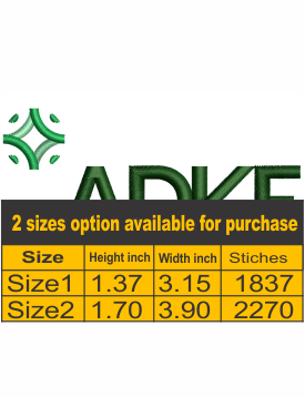 ADKF Embroidery Design is a clean and stylish digital embroidery file made for easy stitching. This design is perfect for decorating t-shirts, caps, jackets, bags and more. It is carefully digitized to give smooth stitching and a neat finish on different types of fabric.