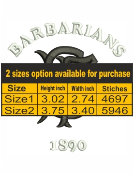 This is Barbarian FC Logo Embroidery file. The designs work well on all embroidery machines. When paid as mentioned for the designs, you instantly get a downloadable digital file of machine embroidery. You won’t receive any physical items but a digital file to use.