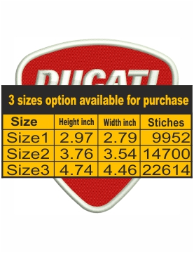 The Ducati Logo Embroidery Design is a premium quality digital embroidery file created for bike lovers and professional embroiderers. Perfect for jackets, hoodies, bags or shirts. It is easy to stitch and work with popular embroidery machines like Brother, Janome, Singer, Husqvarna, Bernina and more. You will get this embroidery file in many formats including Dst, Exp, Hus, Sew, Pcs, Pes, Vip, Vp3 and Xxx, so it's easy to download and stitch.