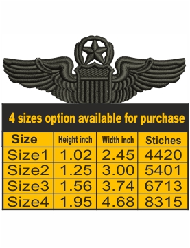 US Army Aviator Wings Embroidery Design, Aviator Wings Embroidery Pattern, Army Military Insignia Embroidery Files Digital Download